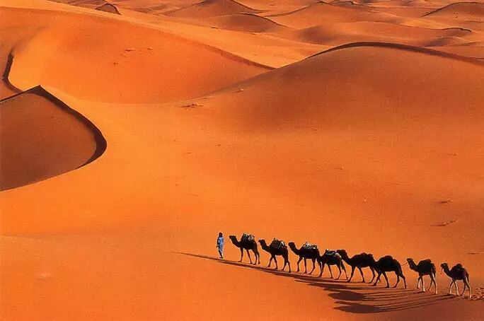 撒哈拉沙漠位於非洲北部,約形成於二百五十萬年前,氣候條件非常惡劣,是世界第二大荒漠,世界最大的沙質荒漠,也地球上最不適合生物生存的地方之一。撒哈拉沙漠以其壯觀的沙漠風光、浩瀚的沙海、精致的沙丘以及迷人的沙漠風情吸引著一批又一批的遊客。目前,撒哈拉大沙漠的某些部分是禁止旅客入內的,但是另有一些很有特色的景點仍可以得以參觀,特別是在地處摩洛哥、突尼斯和埃及境內的部分。在這些區域,可以通過點溝火、騎駱駝以及四驅車探險來體驗撒哈拉大沙漠之旅。