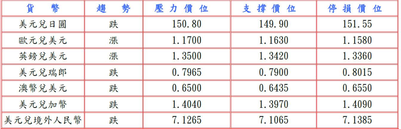 隨後美國紐約聯邦儲備銀行公布10月製造業指數升至正10.7,並據芝加哥聯邦儲備銀行的零售貿易預估報告(CARTS)顯示,剔除汽車及零部件的9月零售銷售經季節調整後增長0.5%,而且美國財政部長貝森特稱,美國財政赤字與國內生產總值(GDP)之比仍有下降空間,但表示政府停擺使美國經濟每天損失150億美元,FED理事米蘭亦警告稱,美國與中國貿易緊張局勢再起,給經濟前景帶來新的下行風險,FED下調指標利率變得更重要,而且FED在最新褐皮書中稱,經濟近期無變化,但顯現消費降溫的跡象,拖累美元兌日圓跌至150.88低點。預估今日美元兌日圓阻力於150.80-151.00,支撐於149.80-150.00。
