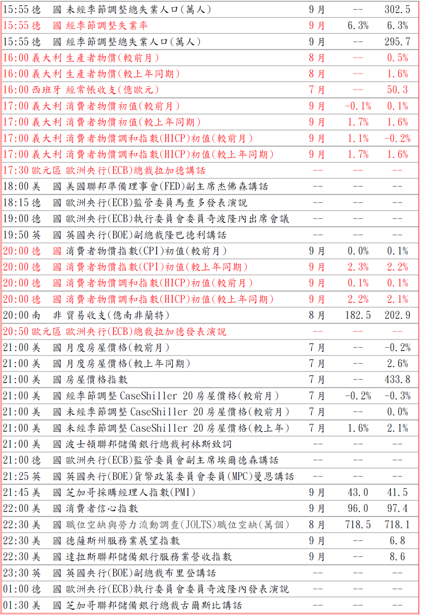 隨後克利夫蘭聯邦儲備銀行總裁哈瑪克稱,FED在通貨膨脹壓力下需要維持限制性貨幣政策,並據全美不動產協會(NAR)公布美國8月成屋待完成銷售分別較前月與上年同期升4.0%及3.8%高於預期,但聖路易斯聯邦儲備銀行總裁穆薩萊姆表示對進一步降息持開放態度,而且FED理事米蘭認為美國總統川普政策將壓低中性利率,從而支持大幅降息,市場亦擔心美國政府關門,將推遲發布9月就業報告和其他一系列關鍵數據,打壓美元兌日圓至低點 148.45。預估今日美元兌日圓阻力於148.80-149.00,支撐於147.80-147.00。
