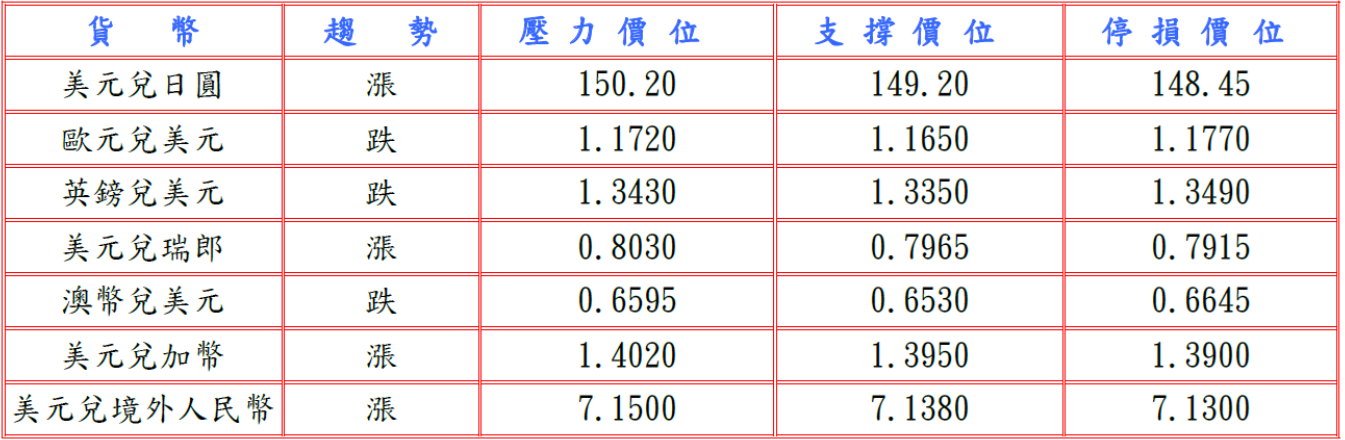 自2013年美國政府停擺多次以來首次推遲發布關鍵就業數據,令美國供應管理協會(ISM)報告備受關注,其調查顯示9月非製造業PMI降至50.0,突顯服務業停滯,並據FED理事米蘭再度呼籲激進降息,而且美國民主黨和共和黨提出結束政府關門的計畫在參議院失敗,但芝加哥聯邦儲備銀行總裁古爾斯比及達拉斯聯邦儲備銀行總裁洛根皆對降息持謹慎態度,提振美元兌日圓至147.81高點。隨著財政鴿派的高市早苗當選日本執政自民黨總裁,引發日圓跳空重貶,預估今日美元兌日圓支撐於149.00-20,阻力於150.20-40。