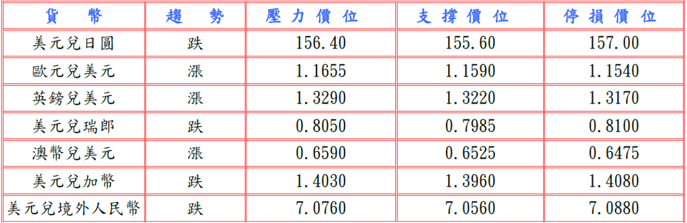 隨著知情人士稱,美國總統川普敦促日本首相高市早苗避免與中國的爭端進一步升級,但日本部分議員對川普的公開沉默保持警惕,另外日本放送協會(NHK)報導,日本2025財政年追加預算預計約18.3兆日圓,並據消息人士透露,日本將增加發售短期和中期債券,為大規模經濟刺激計畫提供資金,引發評級機構惠譽(Fitch Ratings)對其主權信用評級的風險發出新警告,而且投資人對FED的政策走向的看法仍存在分歧,推升美元兌日圓至156.50高點。預估今日美元兌日圓阻力於156.40-60,支撐於155.40-60。