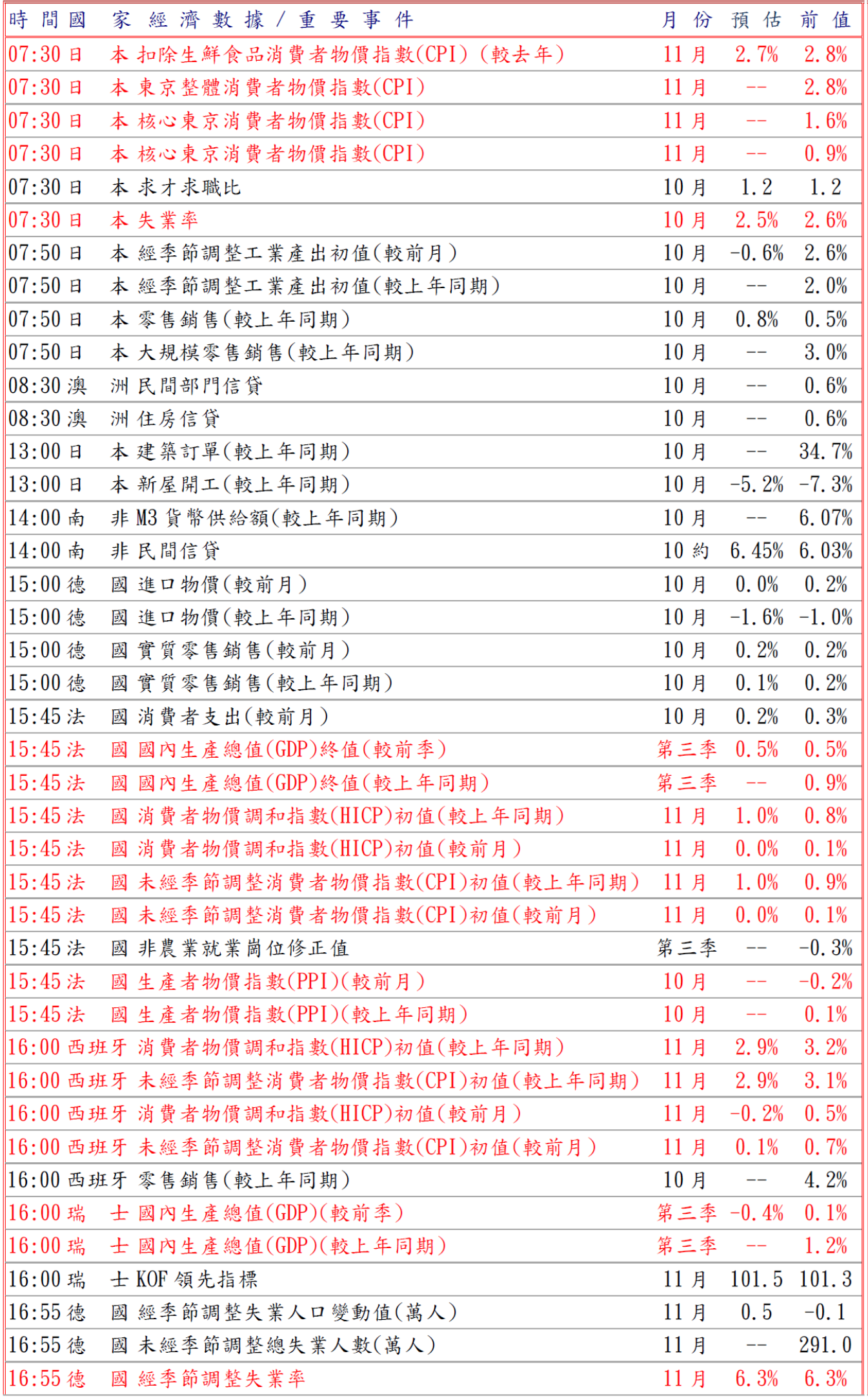 美國國家經濟委員會主任哈西特可能成為下任美國聯邦準備理事會(FED)主席,其降息的傾向料削弱美元,並據FED最新褐皮書報告表示,近幾周美國經濟活動變化不大,但十二個地區中約一半就業趨弱及消費支出下降,強化FED下月降息的預期,週四壓抑美元;此外,日本央行(BOJ)審議委員野口旭警告長期低利率可能加劇通貨膨脹及削弱日圓,隨著通貨膨脹率接近2%,推遲加息的弊端增加,並稱推高借貸成本必須審慎行事,但認為美國關稅帶來的風險消退,BOJ可以恢復加息,鷹派基調及日本當局可能利用美國感恩節假期流動性偏弱進行干預的臆測,提供日圓支撐,推低美元兌日圓至155.69低點。