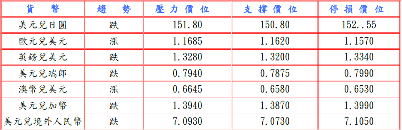 隨後美國聯邦住房金融局(FHFA)公布8月房屋價格分別較前月與上年同期漲0.4%及2.3%優與前值,並據美國ADP全國就業報告發布首份每周初步估算顯示截至10月11日的四周內,民間就業崗位平均每周增加14,250個,但世界大型企業研究會(Conference Board)調查,美國家庭擔心未來六個月工作機會減少及進口關稅導致物價上漲,10月消費者信心指數降至六個月新低94.6,為美國聯邦準備理事會(FED)再降息提供更多理據,而且美國總統川普再猛烈抨擊現任FED主席鮑威爾不稱職,可以接任的候選人很多,打壓美元兌日圓至151.73低點。預估今日美元兌日圓支阻力於151.80-152.00,支撐於150.60-80。