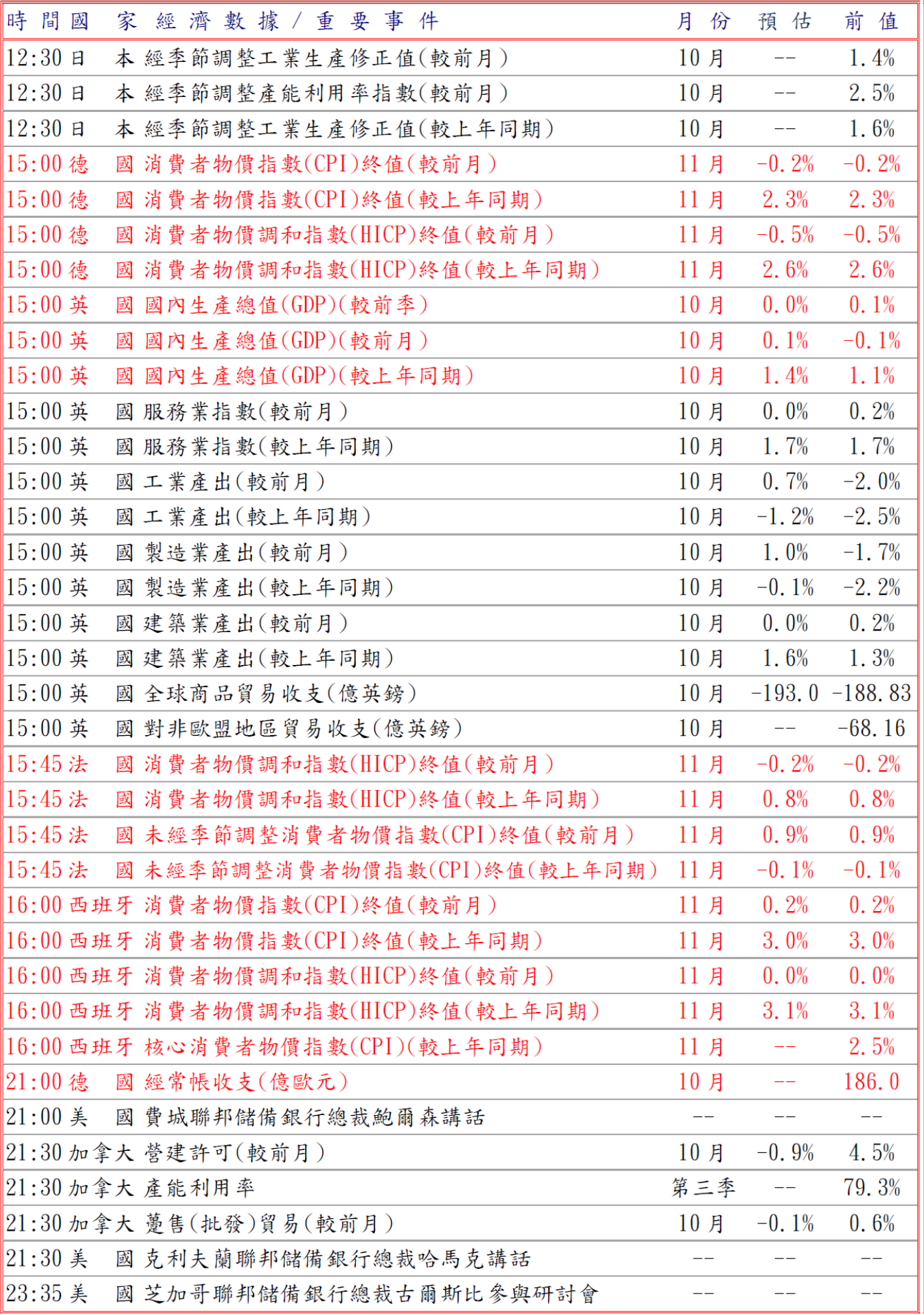 昨日澳洲公布11月失業率持穩4.3%,但淨就業人口較前月減2.31萬人,創九個月來最大降幅,就業崗位年增率亦降至1.3%,料緩解澳洲央行(RBA)近期加息的壓力,並隨著美國雲計算巨頭甲骨文財務預測令人失望,再引發市場擔憂人工智能基礎設施成本飆升超過盈利能力,削弱風險偏好,壓抑澳幣和紐元,而且伊福經濟研究所(Ifo)分別下調德國2025年至2027年經濟增長預期至0.1%、0.8%及1.1%,基爾研究所(Kiel Institute)與萊布尼茨經濟研究所(RWI)亦調降明年德國經濟增長率至1.0%,推低歐元兌美元至1.1681低點。