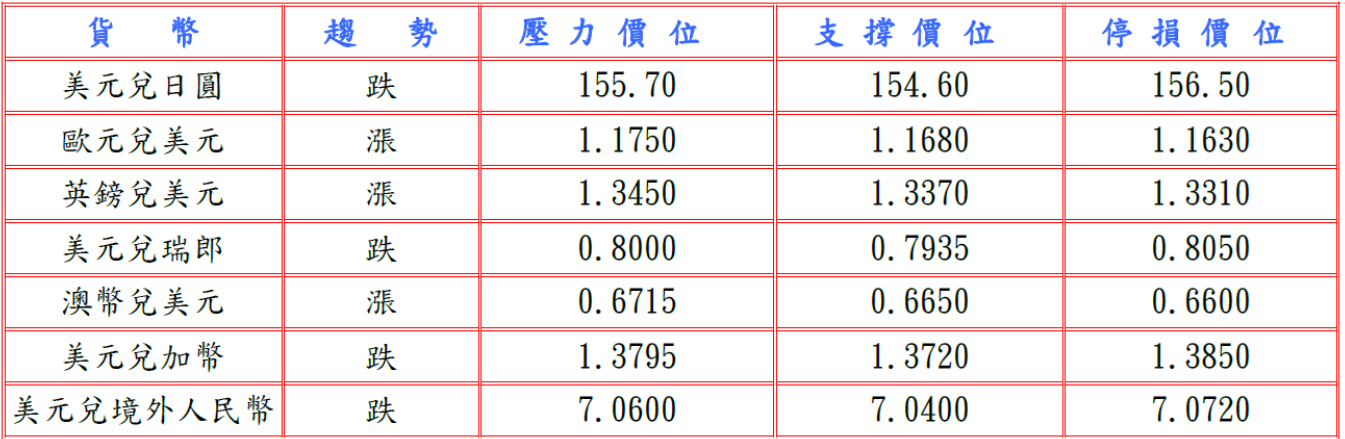 據日本放送協會(NHK)稱,日本正考慮2026財政年稅制改革中擴大超富裕階層稅率範圍,將年總收入徵稅門檻從30億日圓下調至6億日圓,可望增加稅收3,000億日圓,而且市場愈發確信BOJ在下周會議恢復加息,推動兩年期日本公債收益率升至2007年7月以來最高,限制日圓走貶。隨後衡量美國勞動力成本最廣泛指標的就業成本指數第三季放緩至0.8%,並據美國財政部數據顯示11月錄得1,730億美元赤字遠低於去年同期,但美國聯邦公開市場委員會(FOMC)如預期降息25個基點,FED主席鮑威爾則在新聞發布會上稱,若無新關稅宣布,預計商品通貨膨脹在第一季見頂,下一步行動不太可能是升息,重創美元兌日圓至155.78低點。預估今日美元兌日圓阻力於155.70-90,支撐於154.40-60。