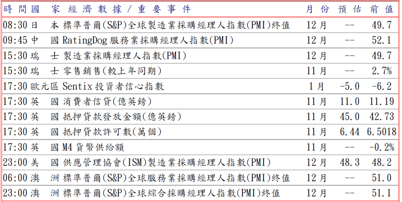 隨後德國外貿協會(BGA)警告稱復甦前景渺茫,國內出口商應為2026年對美國及中國兩大市場出口持續疲軟做好準備,並據S&P全球編制12月的HCOB製造業PMI終值調查,得益於強勁的出口,法國創三年半新高50.7,但政治不確定性恐對2026年前景不利,義大利則重新陷入萎縮達47.0,並因需求持續下滑,德國降至47.0,而且新訂單加速下降壓制,導致產出呈十個月來首次下跌,歐元區跌至九個月低點48.8打擊歐元兌美元至1.1712低點。預估今日歐元兌美元阻力於1.1710-30,支撐於1.1625-45。