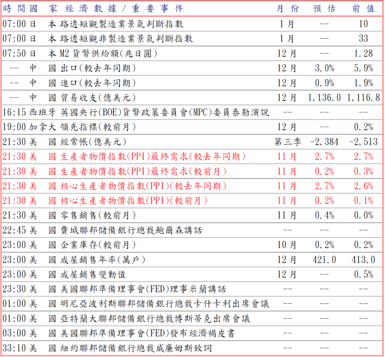週二據去年12月數據顯示,巴克萊借記卡和信用卡的英國消費者刷卡支出較2024年同期降1.7%創2021年以來最大降幅,而且英國零售業聯盟(BRC)零售商銷售額較上年同期增1.2%為5月以來最弱,印證聖誕節前家庭謹慎消費,打擊英鎊兌美元自1.3494高點走低。隨著美國通貨膨脹數據高於FED目標,料延後FED降息步伐支撐美元,打壓英鎊兌美元至1.3421低點。預估今日英鎊兌美元阻力於1.3420-40,支撐於1.3320-40。