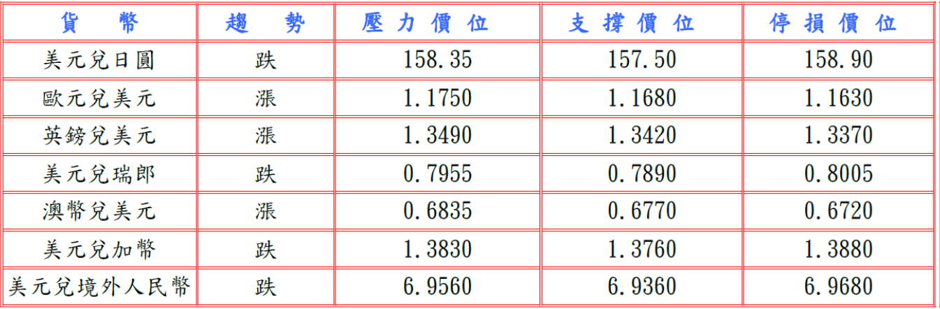 隨後美國全國房地產經紀人協會(NAR)數據顯示,因勞動力市場擔憂加劇及入門級住房持續短缺,抵消利率走低的提振,12月成屋待完成銷售指數驟降9.3%至去年7月以來最低71.8,但美國10月建築支出較前月增0.5%超過預期,而且美國總統川普向齊聚達沃斯論壇的世界領導人表示已就格陵蘭達成協議框架,並排除動用武力和徵收關稅,推升美元兌日圓至158.53高點。預估今日美元兌日圓阻力於158.30-50,支撐於157.30-50。