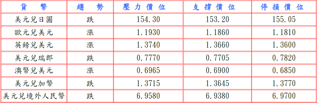 隨著BOJ對貨幣市場狀況預測顯示,週二將出現6,300億日圓資金淨流出,仍遠低於過去干預時呈現的資金變動水平,突顯日圓劇烈波動主要由頭寸調整、市場流動性及對官方暗示的高度敏感性驅動,並據日經新聞與共同社民意調查顯示,日本民眾對首相高市早苗政府的支持率分別降至67%及63%,表明對其經濟計畫的疑慮升溫,令日圓受阻,而且美國11月耐久財訂單較前月增長5.3%高於預期,表明第四季企業設備支出穩定增長,扶助美元兌日圓自低點回升。預估今日美元兌日圓阻力於154.30-50,支撐於153.00-20。