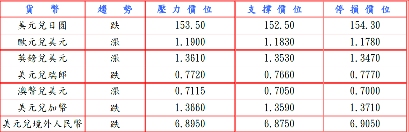 隨後芝加哥聯邦儲備銀行主席奧斯坦古爾斯比表示,如果能夠證明通脹率正朝著2%的目標邁進,他仍然認為2026年可能會有多次降息,拉低美元兌日圓至152.69低點價位,但美國聯邦準備理事會(FED)理事巴爾表示,美國通脹前景仍存風險,下次降息可能要等到相當長一段時間,舊金山聯儲總裁戴利稱FED仍須降低通膨,另芝加哥商品交易所(CME)稱,市場普遍預期美國聯邦準備理事會(FED)將在3月和4月維持利率不變,推高美元兌日圓升至153.92高點價位。預估今日美元兌日圓阻力於153.40-60,支撐於152.40-60。