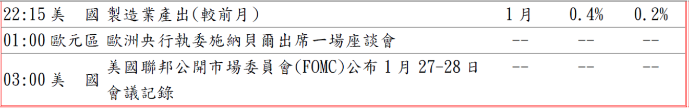 隨後德國商會表示,德國經濟仍處於停滯狀態,預計 2026 年僅成長 1%,德國ZEW 數據顯示,德國投資者信心在 2 月意外下滑,德國2月ZEW經濟景氣指數意外降至正58.3,低於市場預期上升至正65.0,推低歐元兌美元跌至1.1804低點價位,但調查顯示德國1月消費者物價指數(CPI)終值及調和指數(HICP)終值分別較前月上升0.1%及2.1%,皆符合市場預期,據義大利國家統計局公佈2025年12月義大利對全球市場貿易順差為60.37億歐元(約71.5億美元),較2024年同期的51.47億歐元有所擴大,義大利對歐盟國家貿易逆差為55.01億歐元,相較於2024年92.71億歐元赤字顯著收窄,推升歐元兌美元升至1.1853高點價位。預估今日歐元兌美元阻力於1.1890-1.1910,支撐於1.1820-40。