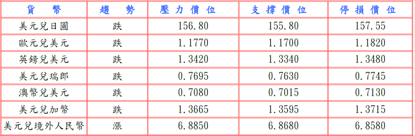 據日本財務省數據顯示截至2月21日當周,外資買入1.89兆日圓長期日本債券,終結連續兩周淨拋售,但1月29日至2月25日期間,日本未動用日圓進行外匯干預,令日圓承壓;此外,美國經濟漸樂觀及企業高層信心增強,FED主席提名人沃什推動FED在川普總統任期內立即降息的道路縮窄,並據美國公布1月最終需求生產者物價指數(PPI)分別較前月與上年同期漲0.5%及2.9%超預期,未來數月通貨膨脹恐加速,同時12月建築支出較前月增0.3%符合預期及芝加哥採購經理人指數(PMI)跳漲至57.7,而且國際貨幣基金組織(IMF)總裁奧爾基耶娃預計美國經濟走強及新公司數量增長驚人,創造新就業崗位,推升美元兌日圓至156.23高點。預估今日美元兌日圓阻力於156.70-90,支撐於155.60-80。