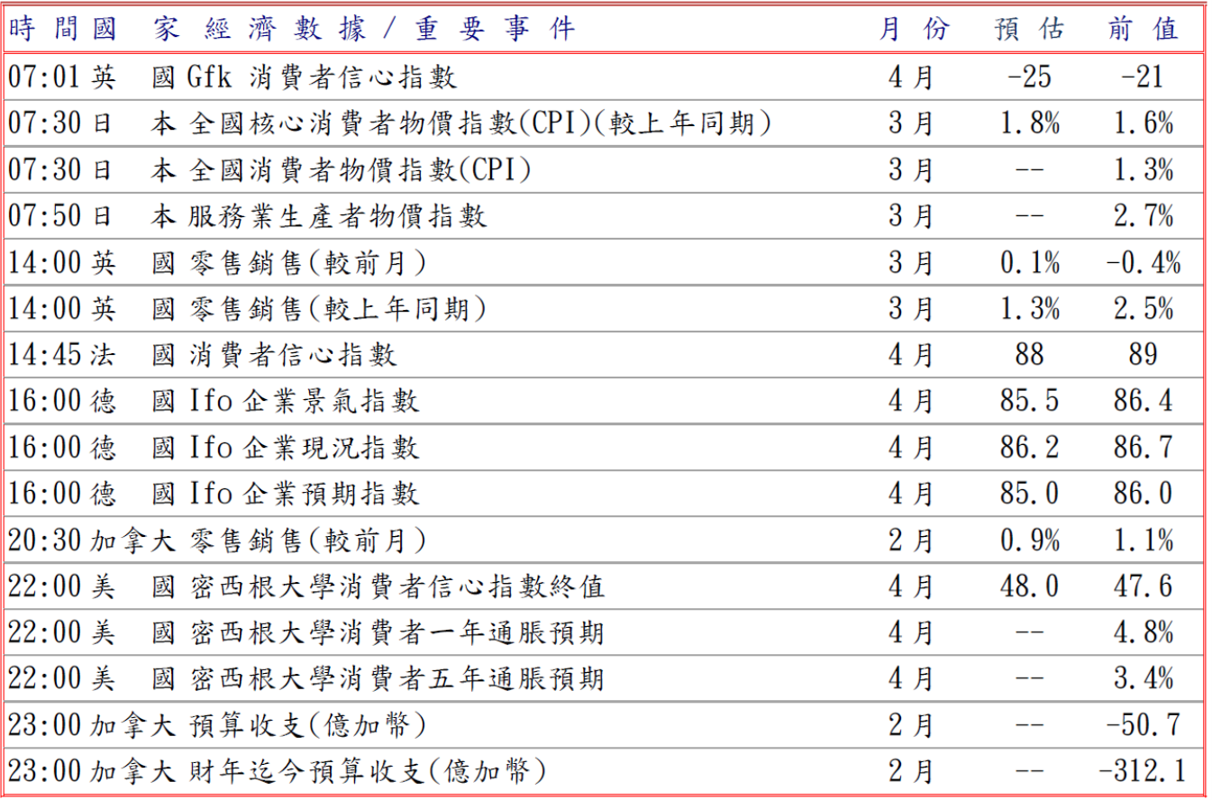 隨著S&P全球編制4月HCOB初值PMI調查,法國綜合PMI降至47.6,萎縮速度創14個月以來最大,德國綜合及服務業PMI則跌至48.3及46.9,而且歐元區綜合與服務業PMI分別跌至48.6及47.4,凸顯受到中東戰爭影響,加上物價飆升導致需求疲軟,商業活動意外出現萎縮,另外美伊和平談判陷入僵局,中東情勢依然不明,衝擊歐元兌美元下滑至1.1668低點。預估今日歐元兌美元阻力於1.1700-20,支撐於1.1630-50。